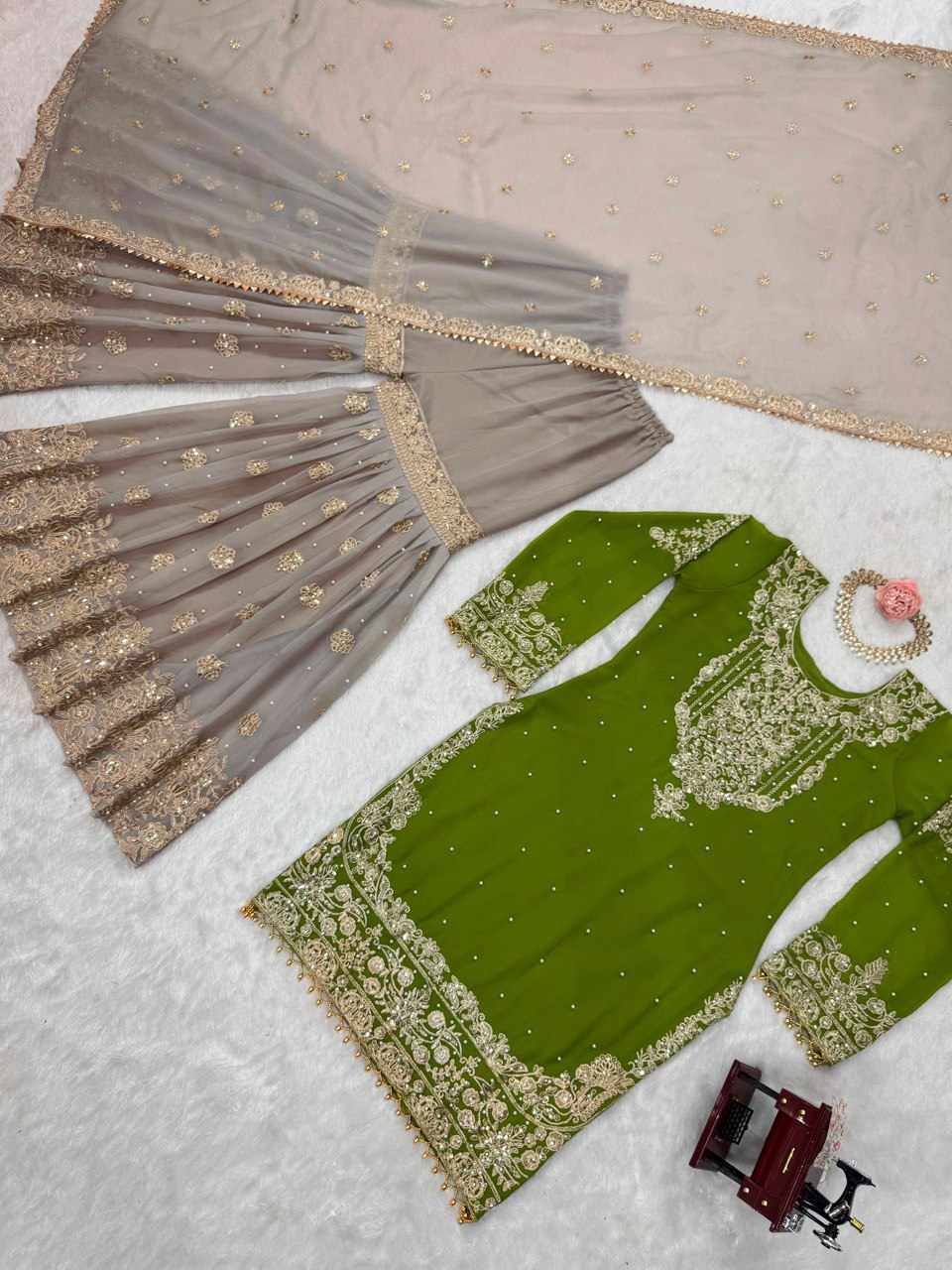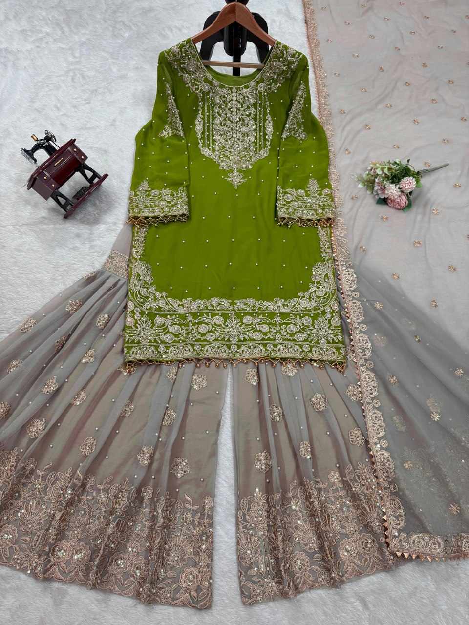 KD 1486 Green Faux Georgette with inner Beautiful Designer Suit