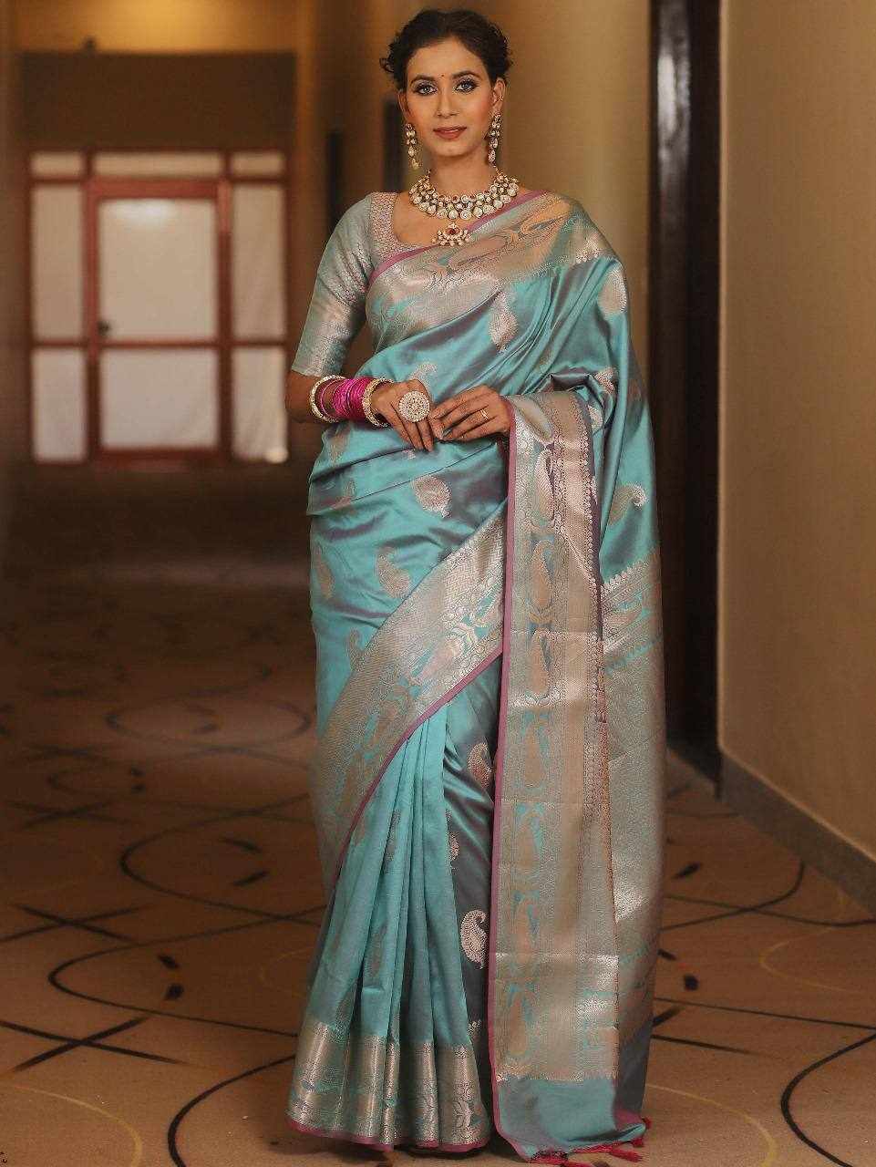 Design: Beautiful rich pallu with elegant jacquard work woven all over the saree