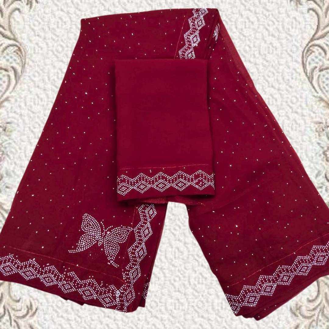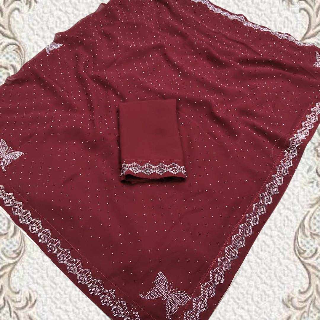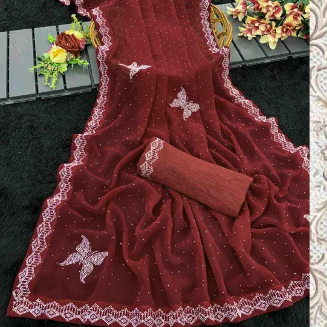 | Name : | S4s Maroon Siroski Butterfly Stones Lace Georgette Party Wear Saree |