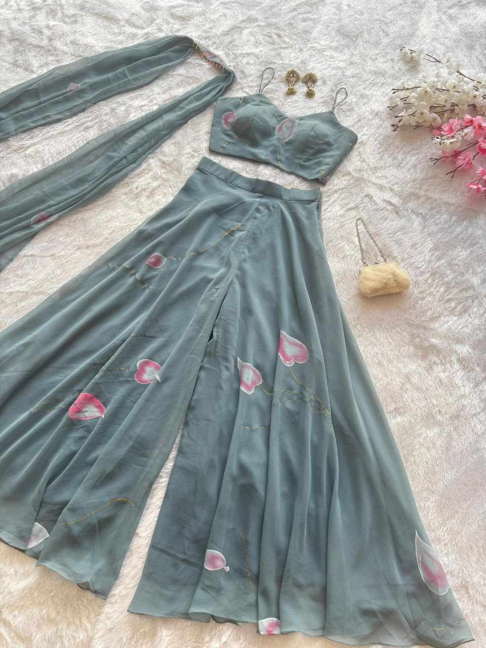 Plazo – Pure Georgette hand-painted flared plazo designed for effortless flow and all-day comfort